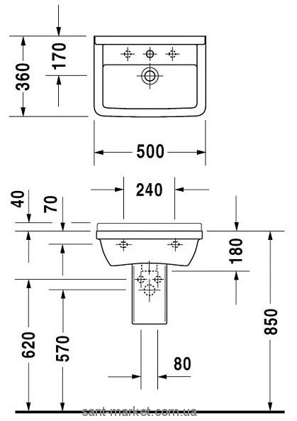Раковина для ванной подвесная Duravit коллекция Starck 3 белая 0300500000