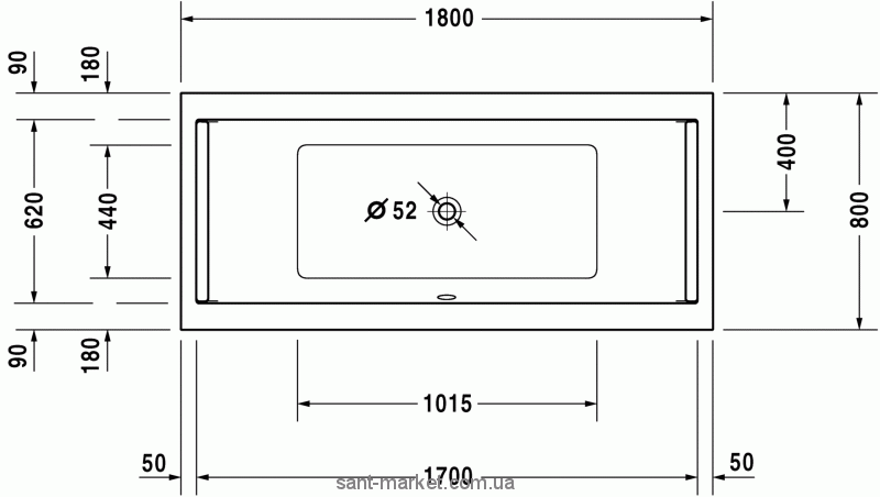 Ванна акриловая прямоугольная Duravit коллекция Starck 1 180х80х48 700338000000000