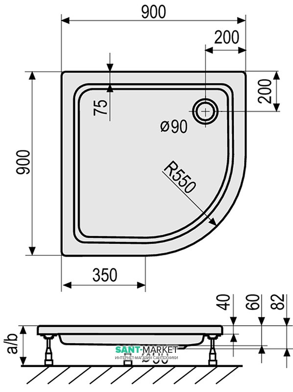 Душевой поддон акриловый четверть круга Duscholux Eco-Line 90х90х18.5 белый 676.077101