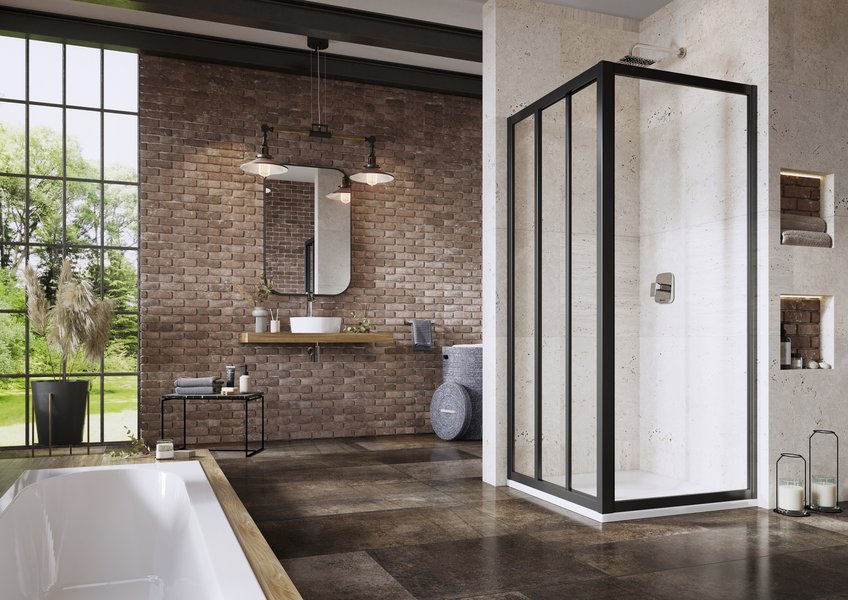 Неподвижная стенка APSS комбинируется с душевыми дверями ASDP3 (высотой 1980 мм) для создания "Г" - образной душевой кабины. С помощью двух неподвижных стенок типа АPSS и душевых дверей ASDP3 создадите "П" - образную душевую кабину. Возможно изготовление атипичных душевых дверей и неподвижной стенки.