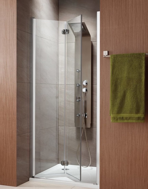 Radaway Eos DWB — это дверь складывающаяся в нишу. Дверь складывается по середине внутрь душевой зоны, стекло ближе стены поворачивается внутрь и наружу. Данная душевая дверь представлена в размерах 70, 80, 90 см и имеет левостороннее и правостороннее исполнение. Коллекция Eos очень популярная из-за своей практичности. Широкий модельный рад и доступная цена это основные плюсы этой коллекции. В душевых кабинах Eos дверь открывается как наружу, так и внутрь. Кроме моделей с обычной распашной дверью, есть кабины со складывающейся дверью (bifold) и двустворчатой дверью. Все модели возможно установить как на поддоне, так и непосредственно на пол. Все модели возможно установить без планки порога. В таком случае нижний горизонтальный уплотнитель будет размером выше.