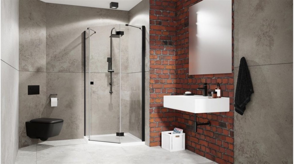 Essenza New Black PTJ — пятиугольная душевая кабина с одностворчатой распашной дверью. Коллекция Essenza New это набор душевых кабин, дверей в нишу и шторок на ванну спроектированных согласно требованиям многих покупателей. Соединение больших листов стекла и элегантных чёрных деталей создает легкую и эстетичную кабину. Кабины серии Essenza New допускается устанавливать как на поддоны, так и непосредственно на пол. Все модели можно заказать по индивидуальным размерам. Душевая кабина доступна с открыванием двери влево или вправо. Душевые поддоны серии Doros PT облегчат установку и сделают изделие гармоничным.