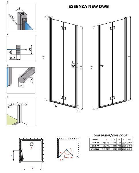 Коллекция Essenza New это набор душевых кабин, дверей в нишу и шторок на ванну спроекторованных согласно требованиям многих покупателей. Соединение больших листов стекла и элегантных хромированных детелей создает легкую и эстетичную кабину. Кабины серии Essenza New допускается устанавливать как на поддоны, так и непосредственно на пол. Все модели можно заказать по индивидуальным размерам.