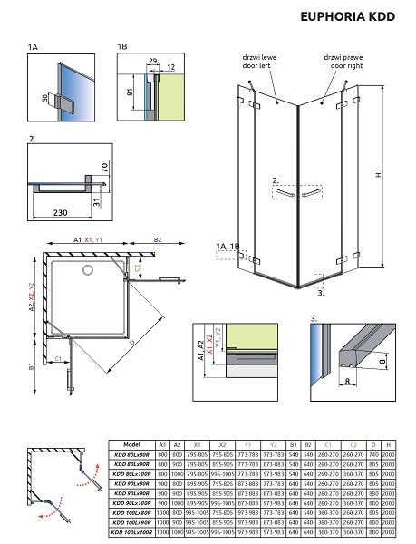 Коллекция Euphoria это набор душевых кабин и дверей в нишу с распашной дверью открывающейся наружу. Все в стиле минимализма. Пристенный профиль отсутствует, в место него пристенные кронштейны. Кабины серии Euphoria допускается устанавливать как на поддоны, так и непосредственно на пол. Все модели можно заказать по индивидуальным размерам.