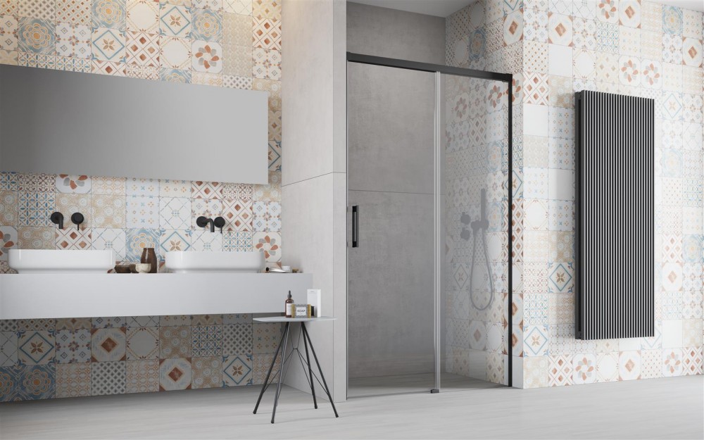 Первая коллекция в стиле настоящего минимализма — двойные ролики спрятаны внутри профилей, на пристенных профилях отсутствуют даже заглушки болтов — в место них маскировочная лента. Все изделия из этой коллекции допускается устанавливать как на поддон так и непосредственно на пол. Кроме того, все изделия допускается устанавливать с порогом или без порога меняя нижний фиксатор (в комплекте).