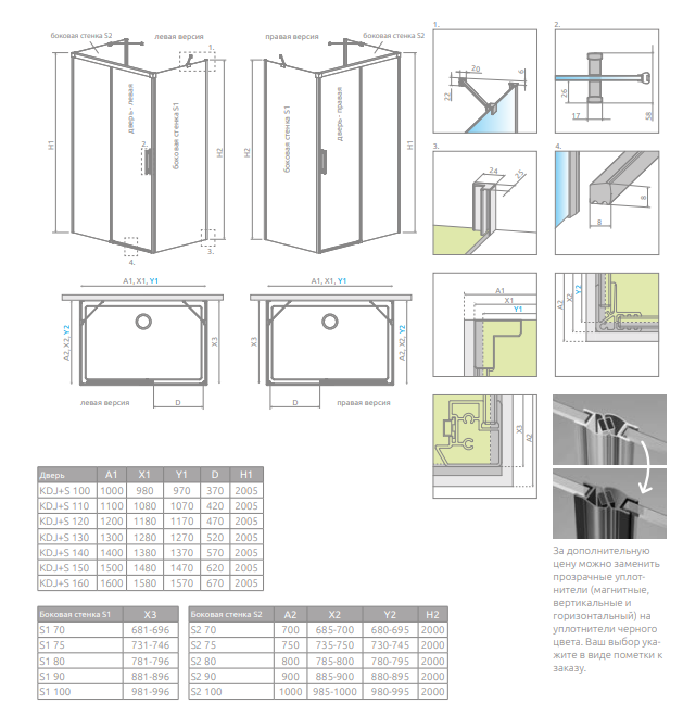 В заказе надо указать 3 номера артикулов: двери, боковых стенок S1 и S2.