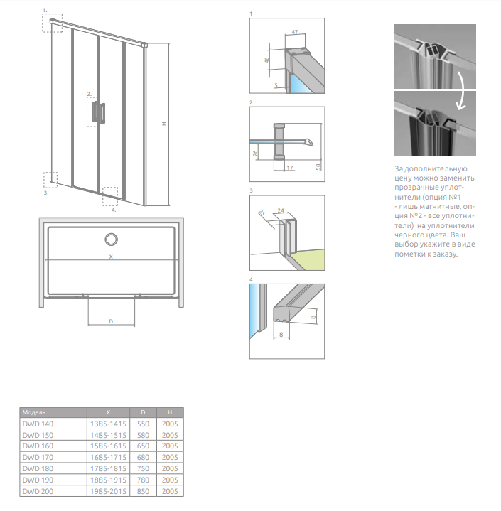 - Возможность демонтировать и наклонять дверь для чистки кабины.