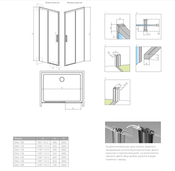 - Возможность демонтировать и наклонять дверь для чистки кабины.