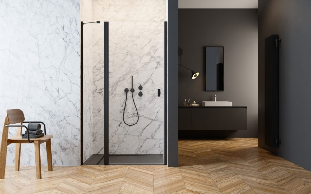 1) Душевая дверь Radaway Nes 8 Black DWJ II 80х200 см распашная левая черный/прозрачное стекло