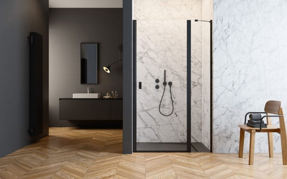 1) Душевая дверь Radaway Nes 8 Black DWJ II 110х200 см распашная правая черный/прозрачное стекло