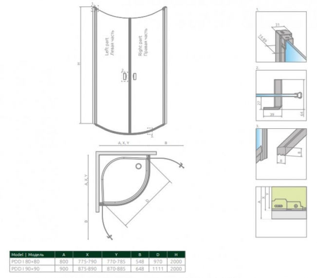 - на все стекла стандартно наносится покрытие Easy Clean, которое помогает содержать кабину в чистоте