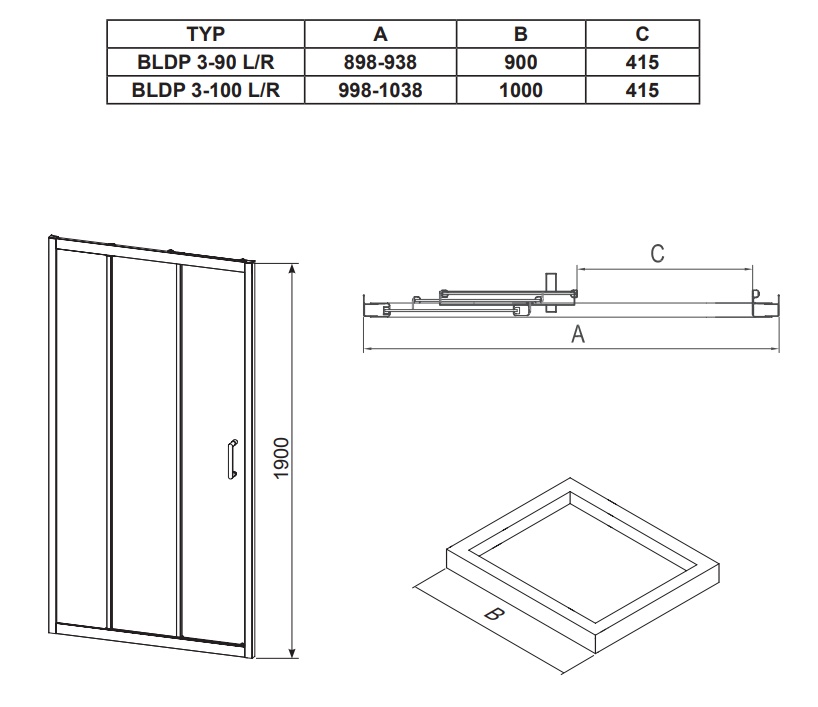 Душевые двери BLDP3 могут быть установлены только в нише не могут быть объединены с твердой стенкой. Установленный в обшитой панелями нишу на лотках RAVAK Aneta, Angela, Perseus, Perseus Pro, Perseus Pro Flat, Perseus Pro Chrome, Gigant Pro, Gigant Pro Flat, Gigant Pro Chrome или непосредственно на пол с интегрированным блоком сливного или стоком в полу.