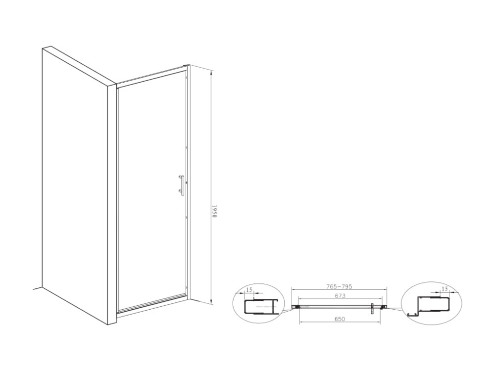 Душевая дверь Roca Town-N 80х195 см профиль хром/прозрачное стекло AMP2708012M