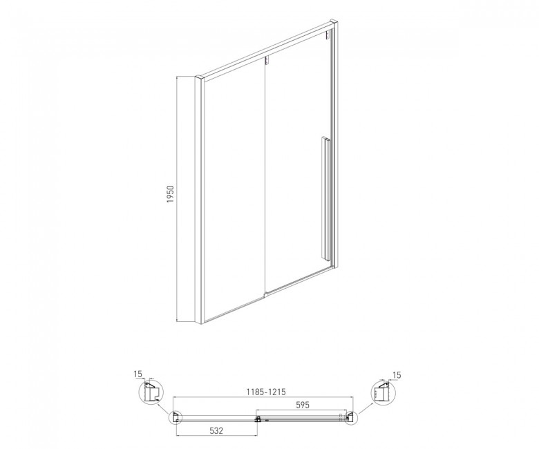 1) Душевая дверь Volle Aiva раздвижная 120х195 см хром/прозрачное стекло
