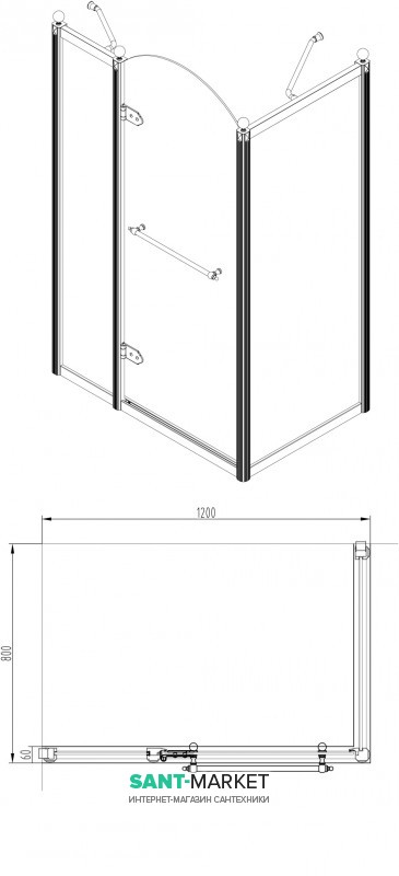Душевая кабина Volle Grand Tenerife Silver правая 120х80х200 без поддона 10-22-164 SL