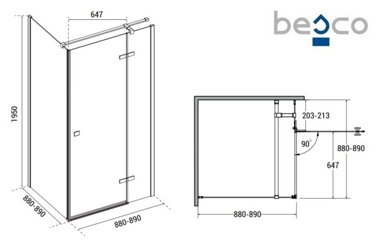 Душевая кабина Besco Pixa 90х90 см правая профиль хром/стекло прозрачное PKP-90-195-C
