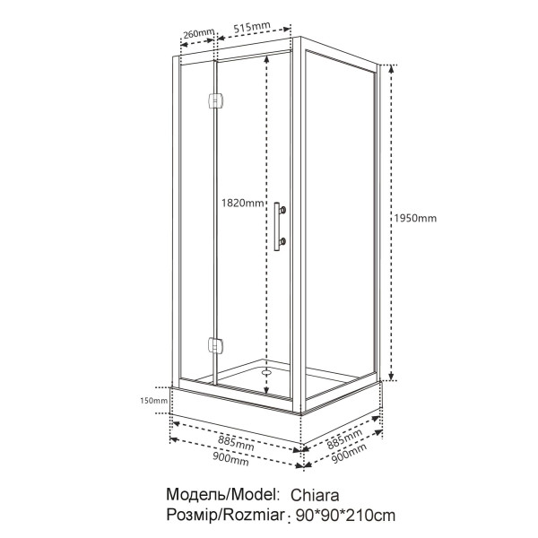 Душевая кабина Insana Chiara 90x90 см профиль черный/стекло прозрачное А0051352
