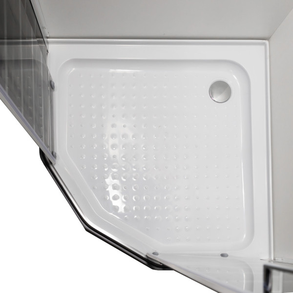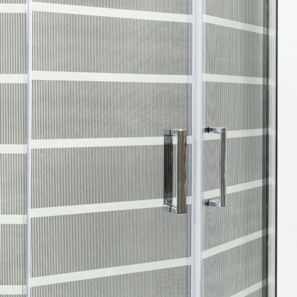 двойные пластиковые ручки, защита от брызг, магнитные ленты, верхние и нижние одинарные ролики, поддон с сифоном "антизапах"