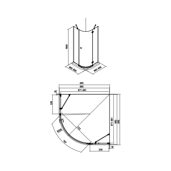 - Цвет двери/стенки: прозрачный