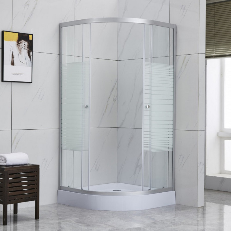 Душевая кабина Kroner KRP Harz - C.F.G. 90x90 см - это стильное и функциональное решение для вашей ванной комнаты. Душевая кабина имеет компактные размеры 90x90 см и форму четверти круга. Эта форма идеально подходит для ванных комнат с ограниченным пространством. Поддон низкий и имеет высоту всего 145 мм. Изготовленный из высококачественного акрила, он прочный и долговечный. Глубина поддона составляет 40 мм, обеспечивая удобство при принятии душа. Конструкция дверей - раздвижная, а материал полотна дверей - стекло с рисунком. Это не только придает душевой кабине элегантный вид, но также обеспечивает вашу конфиденциальность во время душа. В комплект душевого бокса входят поддон, сифон, ручки, ролики, профиль, ножки и комплект крепежных деталей. Это делает его готовым к установке и использованию. <br>Эта душевая кабина Kroner KRP Harz - C.F.G. 90x90 см - идеальное решение для ваших потребностей. Она объединяет в себе эффективную функциональность и стильный дизайн, создавая комфортное и стильное душевое пространство в вашей ванной комнате.