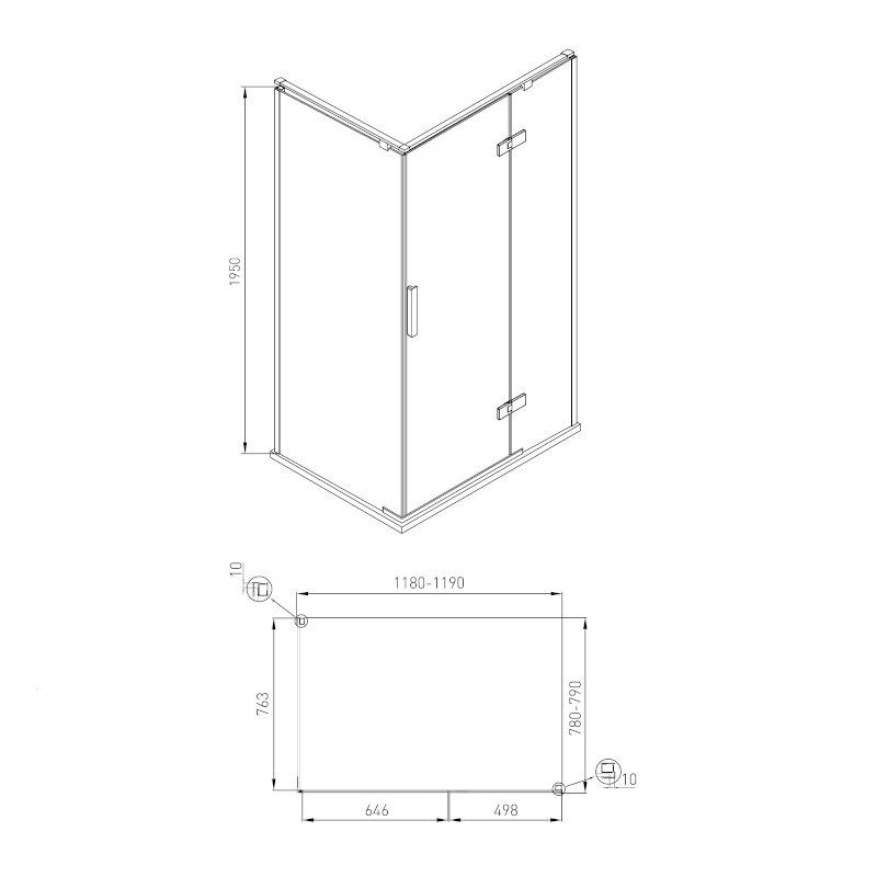 1) Душевая кабина Volle Nemo распашная правая 120х80 см зеркальный хром/прозрачное стекло