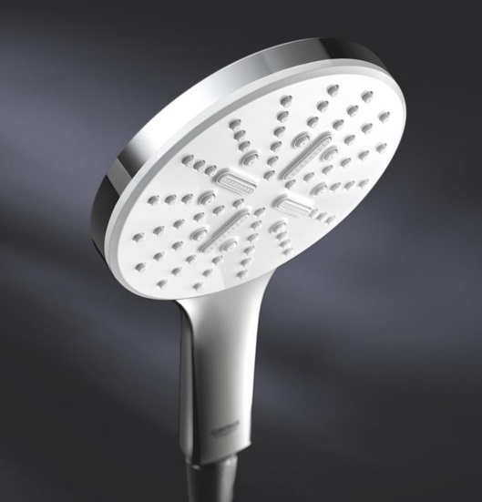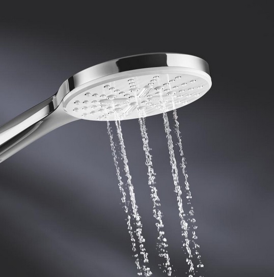 Конструктивной особенностью ручного душа GROHE Rainshower Smartactive 130 является предустановленный режим GROHE RainStart, который активируется при каждом следующем включении душевой лейки.