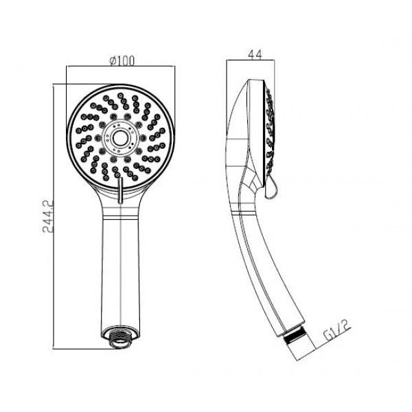 Представленная здесь модель ручной лейки SH502 от Koller Pool оснащена 5-ю типами струи (Spray, Misty, Massage, Spray + Massage, Spray+ Misty) и имеет диаметр 10 см. Универсальное крепление с подводом G 1/2, подойдет для любого стандартного душевого шланга.