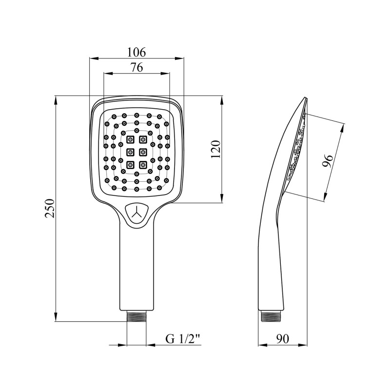 Душевая лейка Kroner Edelstahl Kubus-SCH700 106х120 мм пластик черный CV031196