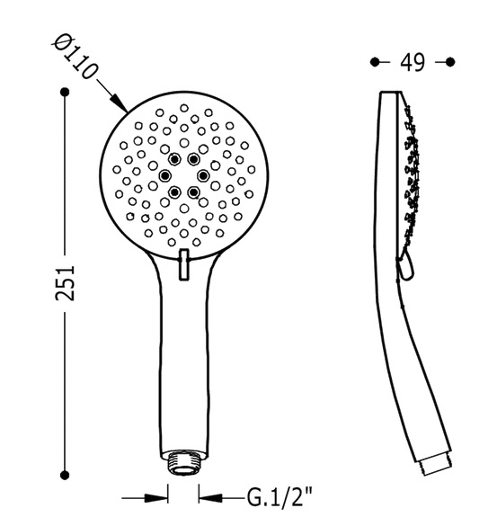 Душевая лейка Tres с гидромассажем 5 типов струи хром