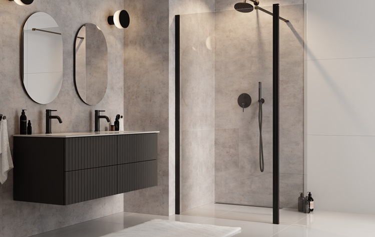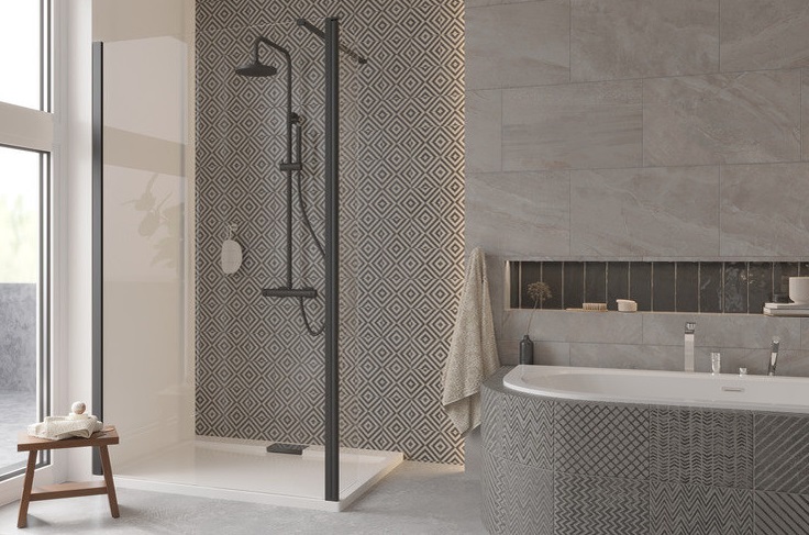 Душевая перегородка Besco Eco-N Walk in 100х195 см профиль черный матовый/прозрачное стекло ENB-100-195C