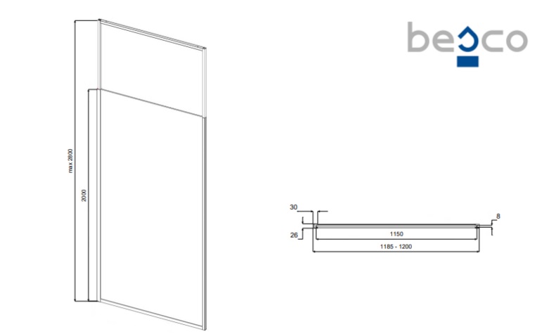 Душевая перегородка Besco Icon Walk in 120х200 см профиль золото/прозрачное стекло ICG-120-200C