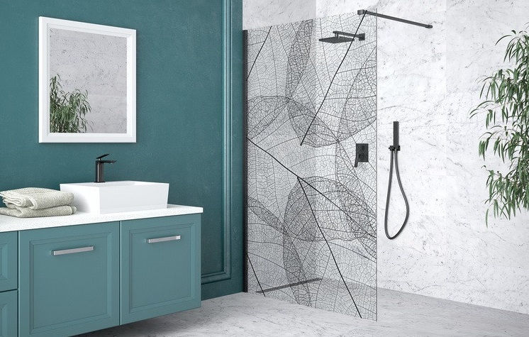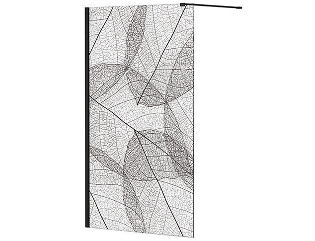 Душевая перегородка Besco Leafy Walk in 120х200 см профиль черный матовый/прозрачное стекло с узором LF-120-200C