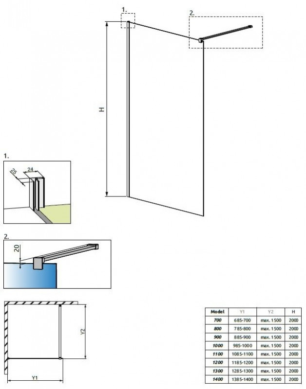 - стекло крепится к стене с помощью пристенных профилей (с регулировкой).