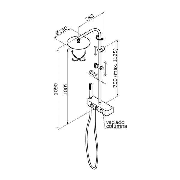 - Длина душевой стойки: 1090 мм