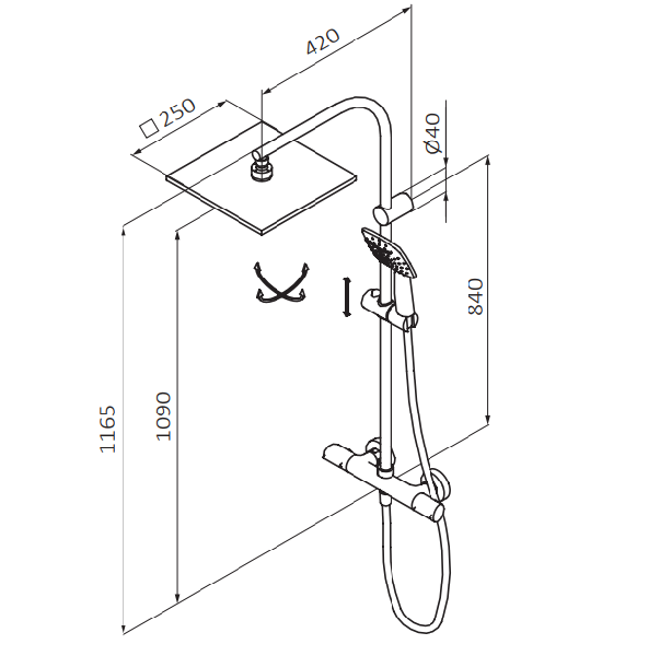 - Длина душевой стойки: 1165 мм