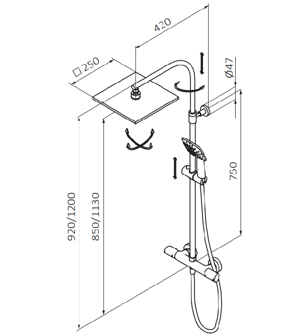 Душевая система GRB Dry термостатический с раздвижной стойкой хром 44435440SQTL