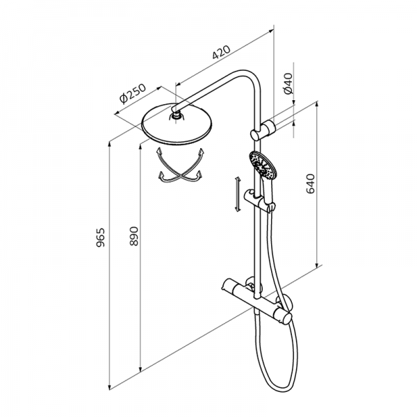 - Длина душевой стойки: 965 мм