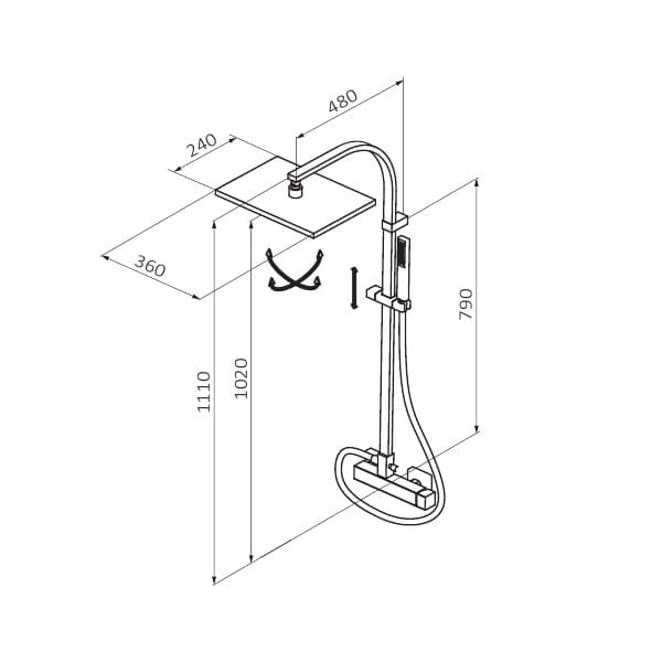 - Длина душевой стойки: 1110 мм
