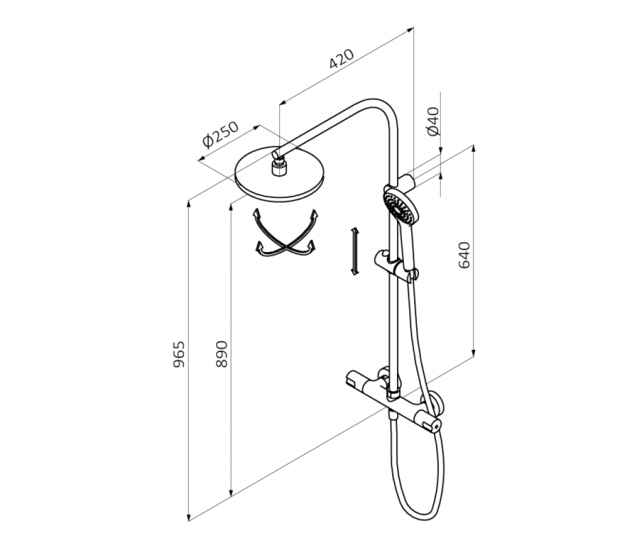 Верхний душ (ДхШ), мм: