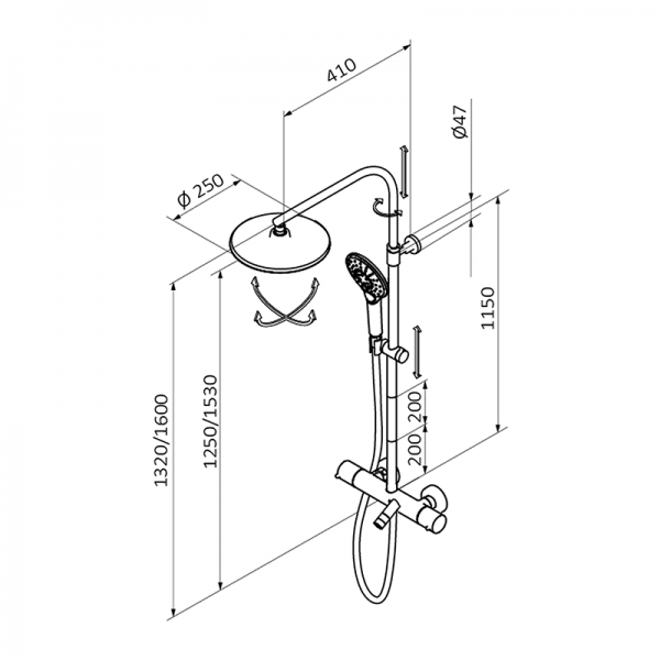 Душевая система GRB Time термостатическая с раздвижной стойкой хром