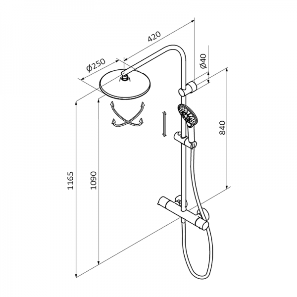 - Длина душевой стойки: 1165 мм