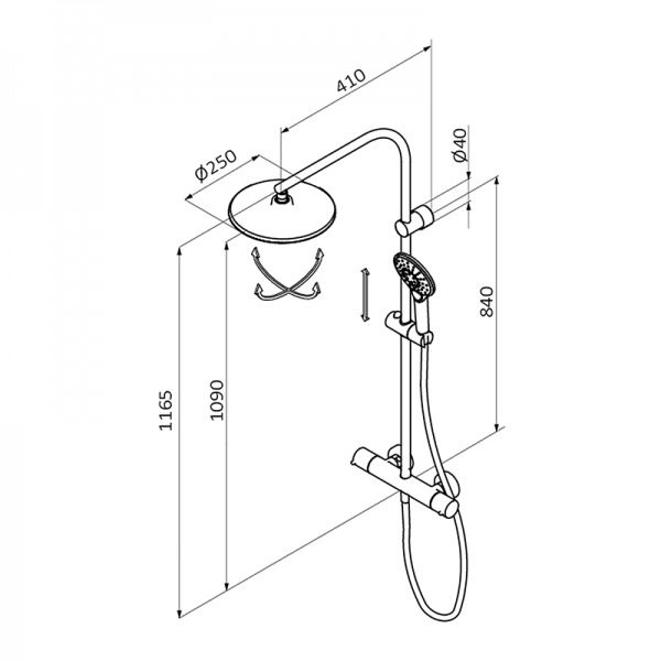 Душевая система GRB Time термостатическая с фиксированной стойкой хром