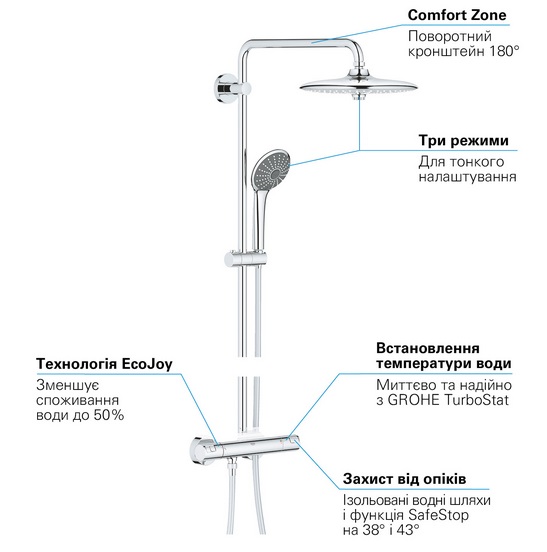 Душевая система Grohe QuickFix Vitalio Joy 260 с термостатом хром