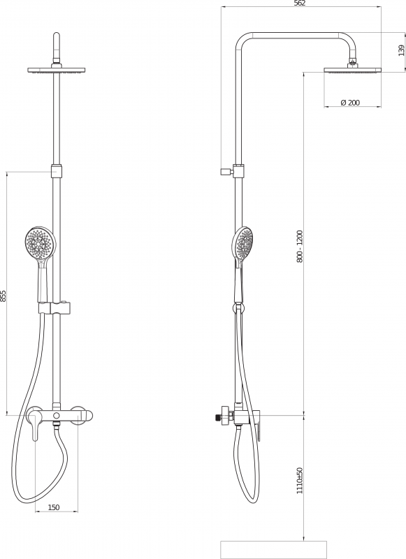 - Диаметр ручной лейки: 130 мм