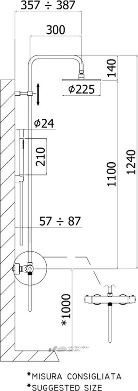 Высота от термостата до верхнего душа - 1100 мм