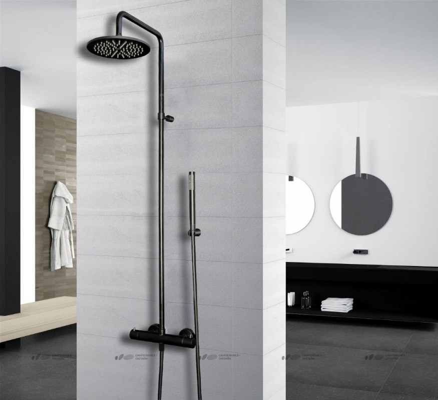 Душевая система Paffoni Birillo Fix с термостатом верхним и ручным душем черный матовый