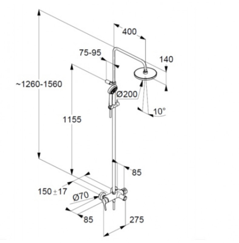 душ с шаровым шарниром, регулировка верхнего душа по высоте