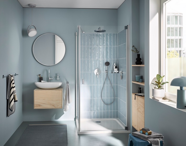 А технология GROHE Water Saving значительно уменьшает потребление воды и энергии без ущерба для производительности. Переключайтесь между верхним и ручным душем и регулируйте напор воды с помощью рычага смесителя.