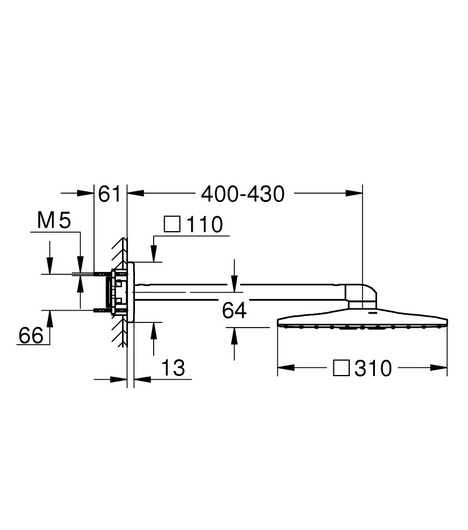 Верхний душ с душевым кронштейном Grohe Rainshower 310 SmartActive Cube 430 мм, 2 режима (26479000)