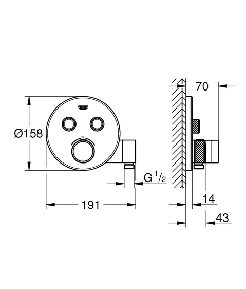 Термостат для встраиваемого монтажа Grohtherm SmartControl с двумя кнопками управления (29120000)
